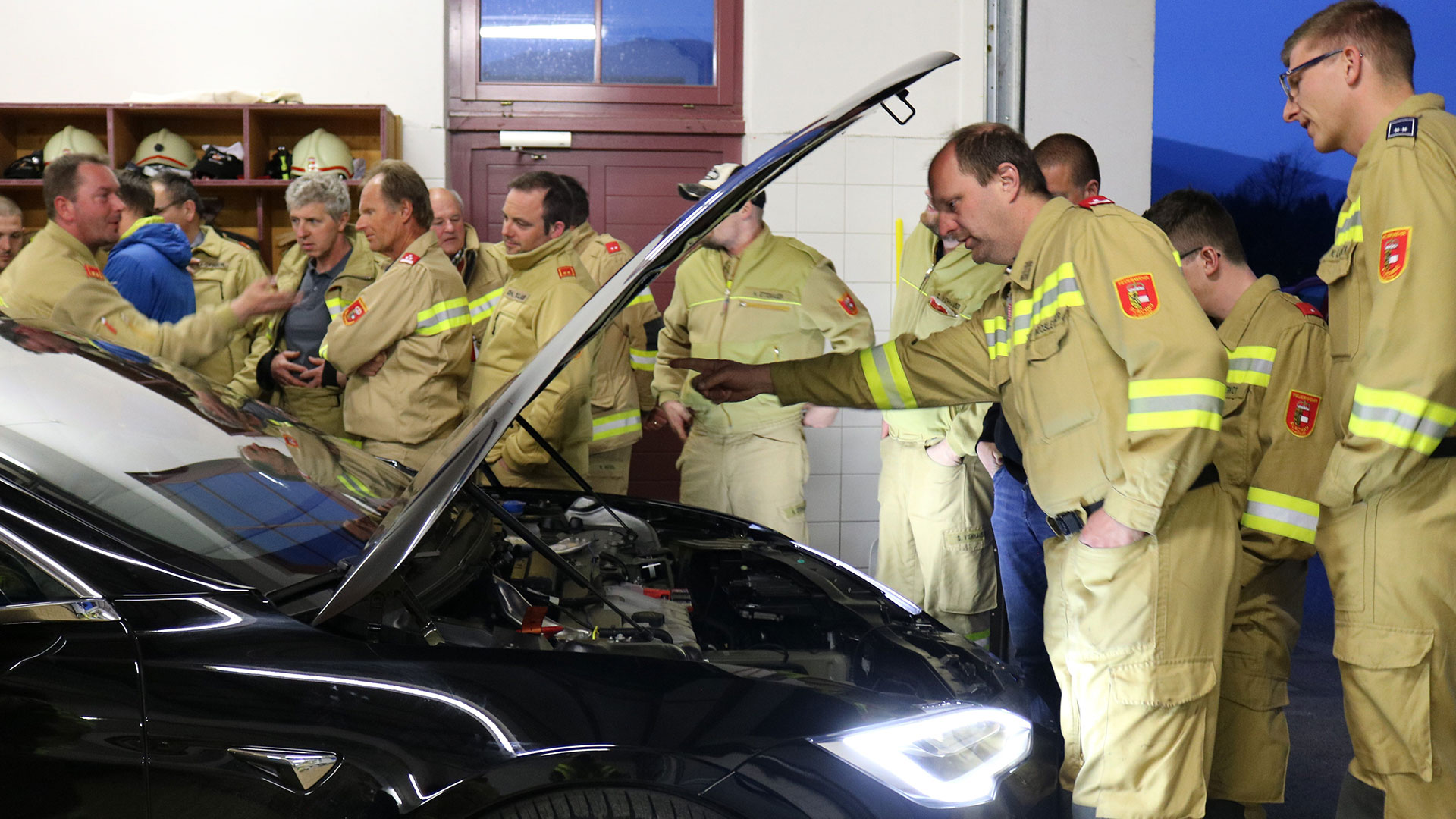 Durch die Zunahme von Elektro- und Hybridfahrzeugen im Straßenverkehr wird man bei künftigen Unfalleinsätzen häufiger auf diese Fahrzeugtypen treffen. Aus diesem Grund informierte man bei dieser Übung über die richtige Bergung, unterschiedliche Hersteller, mögliche Gefahrenquellen und was bei Unfällen mit Batterien zu tun ist. Vertreter der Salzburg AG und der Firma Tesla erläuterten grundsätzliches Wissen wie etwa die Bedeutung verschiedener Warnsymbole und andere Identifizierungsmerkmale von Elektro- und Hybridfahrzeugen. Neben den orangefarbenen Kabeln zählen Crash-Sensoren, Hauptrelais durch 12-V-Kreis, Isolationsüberwachungssysteme und natürlich die unterschiedlichen Batterien zu den wichtigsten Bauteilen dieser Fahrzeuge.