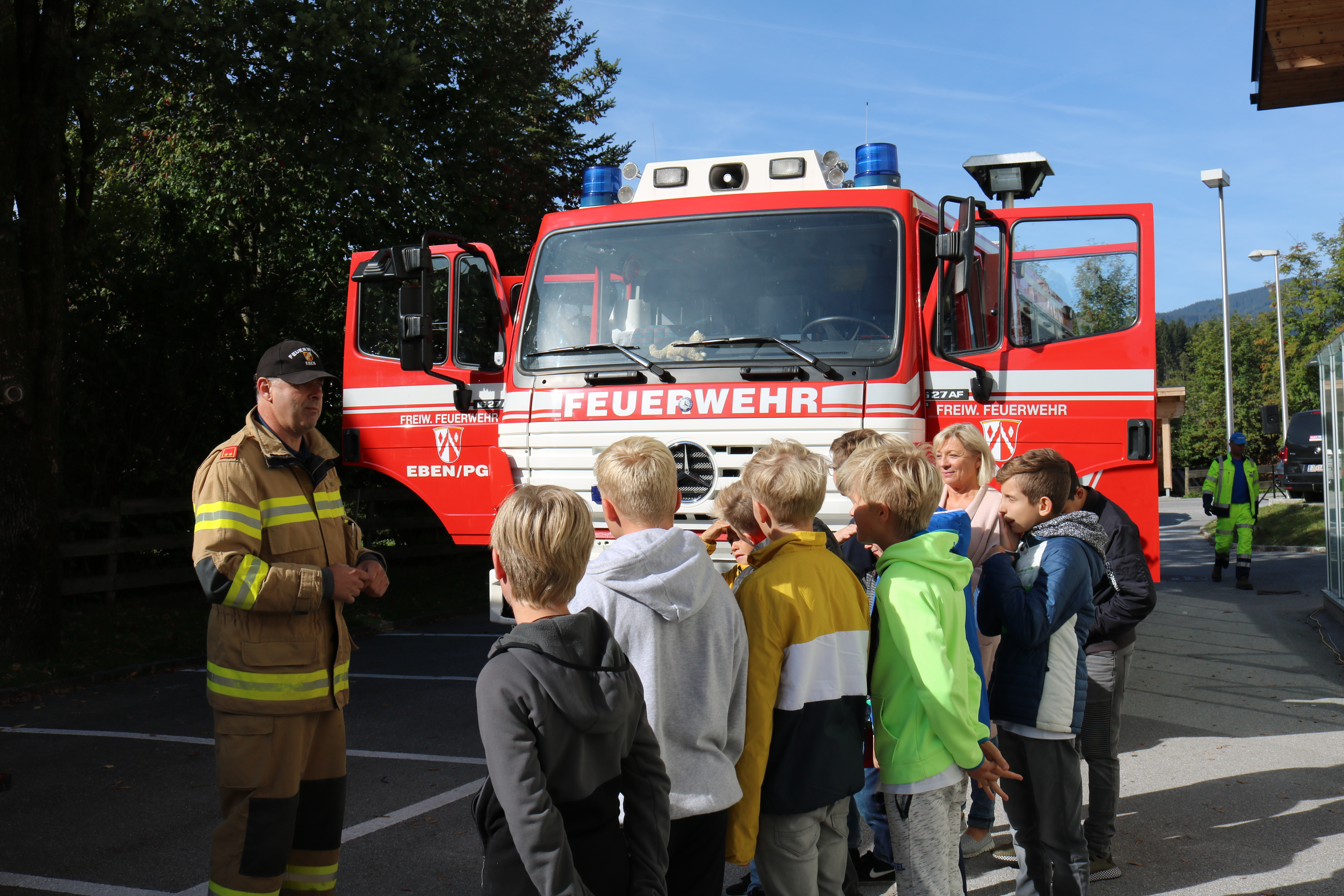 Nach der aktiven Betätigung durften sich die Kinder Fahrzeuge der Feuerwehr Flachau/Reitdorf, Altenmarkt sowie Eben im Pongau genauer anschauen und erhielten eine Erklärung über die Ausrüstung der Feuerwehrleute. An der Atemschutzstation wurde kindgerecht erklärt, was ein Atemschutzträger für psychische und körperliche Voraussetzungen mit bringen muss, um diesen Teilbereich der Feuerwehr überhaupt abdecken zu dürfen.