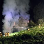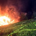 Sechs Feuerwehren mit mehr als 140 Einsatzkräften standen in der Nacht auf Donnerstag, dem 26. September, im Einsatz, nachdem auf einem landwirtschaftlichen Anwesen im Stadtteil Floitensberg ein Brand ausgebrochen war.