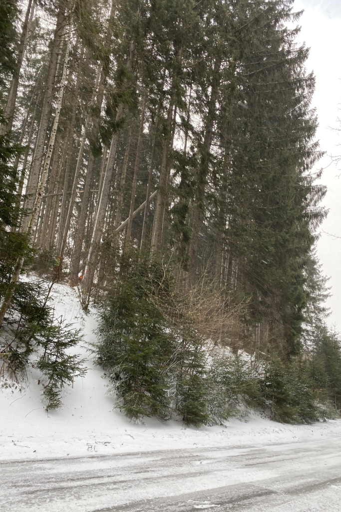 Kurz darauf wurde der Feuerwehr Pfarrwerfen ein weiterer Einsatz gemeldet: Im Bereich eines Güterweges am Schlamingberg drohten Bäume durch die Wind- und Schneelast umzuknicken und auf die Straße zu stürzen. Da hier beim Eintreffen der Feuerwehr aber bereits Forstarbeiter vor Ort waren, beschränkten sich die Aufgaben auf das Absichern der Straße.