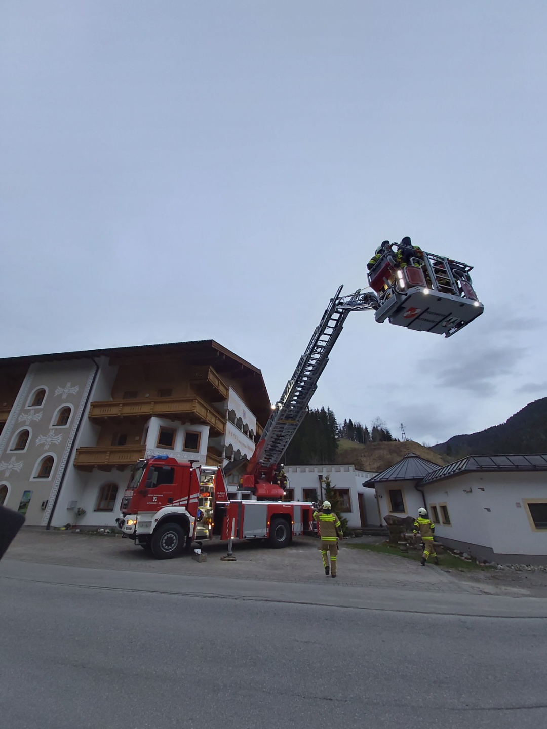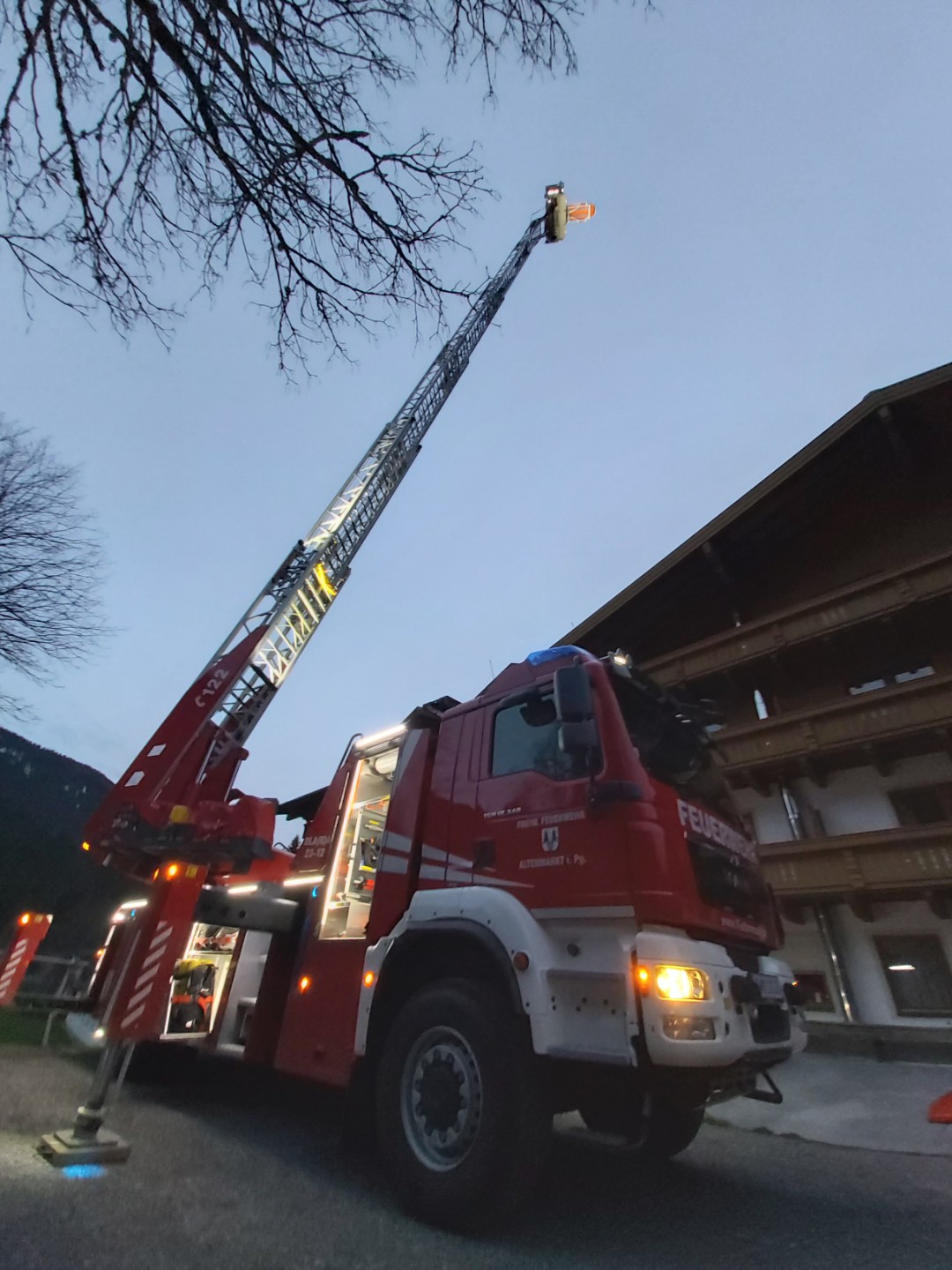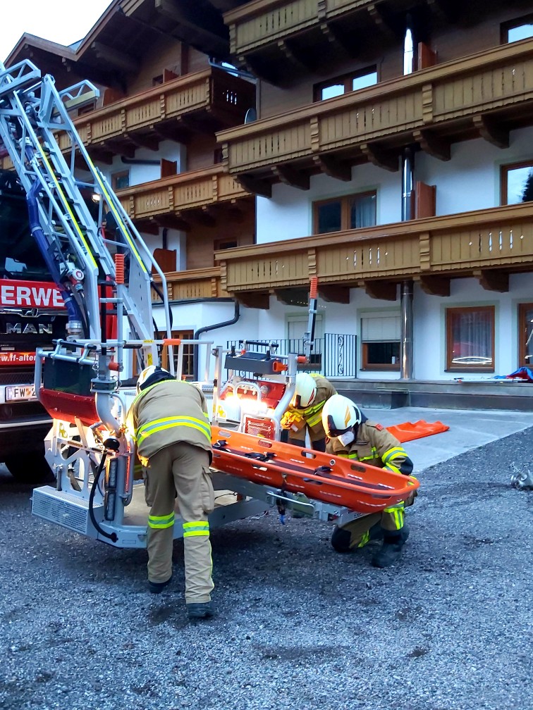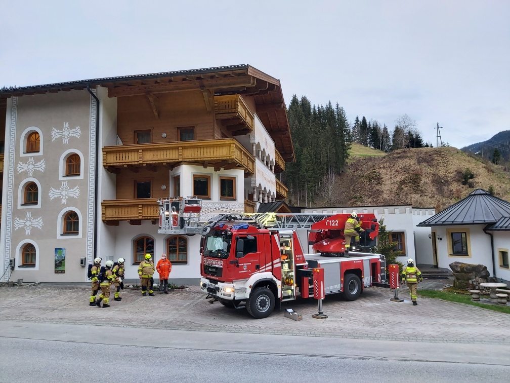 Übung mit hochmoderner Drehleiter in Filzmoos