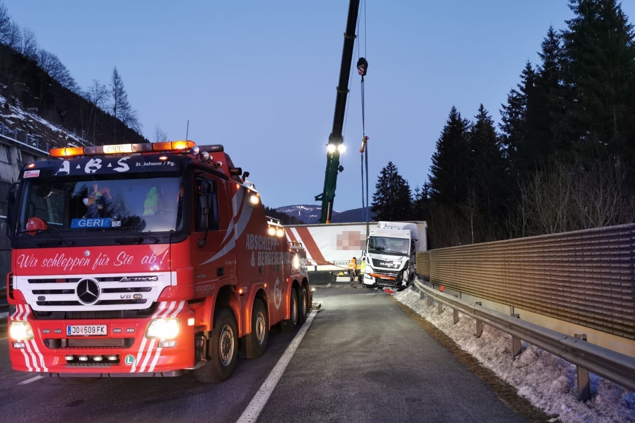 Dienstag Nachmittag kurz vor 14:00 Uhr ereignete sich auf der A10 Tauernautobahn in Fahrtrichtung Villach ein schwerer Verkehrsunfall, an dem ein mit zwei Personen besetzter PKW und ein Sattelschlepper beteiligt waren. Die beiden Fahrzeuge kollidierten etwa einen Kilometer nach dem Reittunnel, wobei der PKW schwerst beschädigt wurde und sich der LKW quer über alle Fahrspuren stellte und zwischen den Leitplanken verkeilte. Zwei Personen wurde bei dem Unfall verletzt.