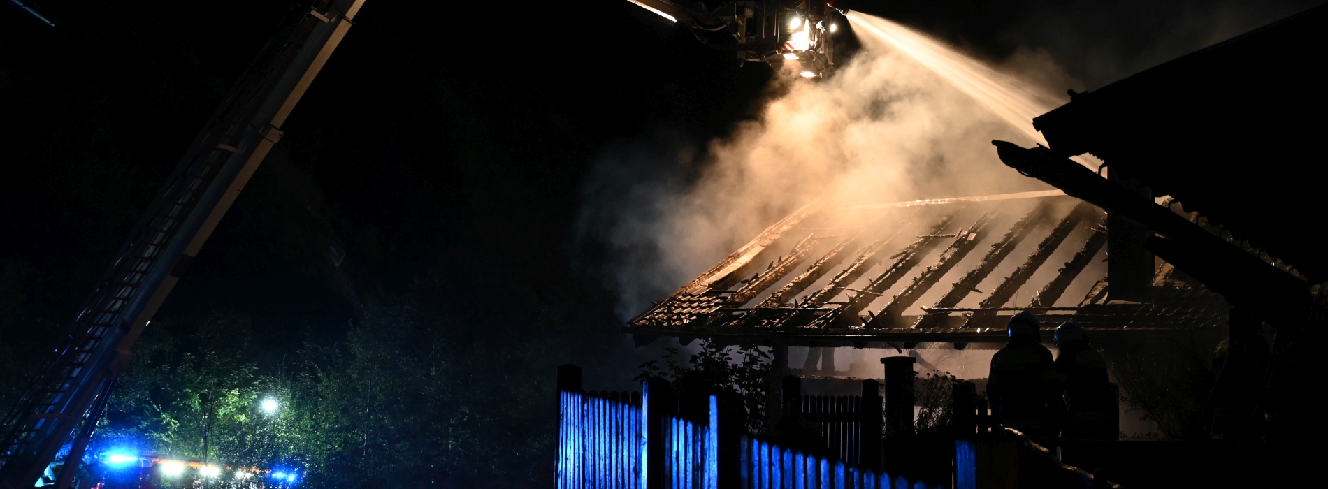 Beim Eintreffen der Feuerwehr stand das Gebäude in Vollbrand, das Feuer drohte auf den Stall überzugreifen.