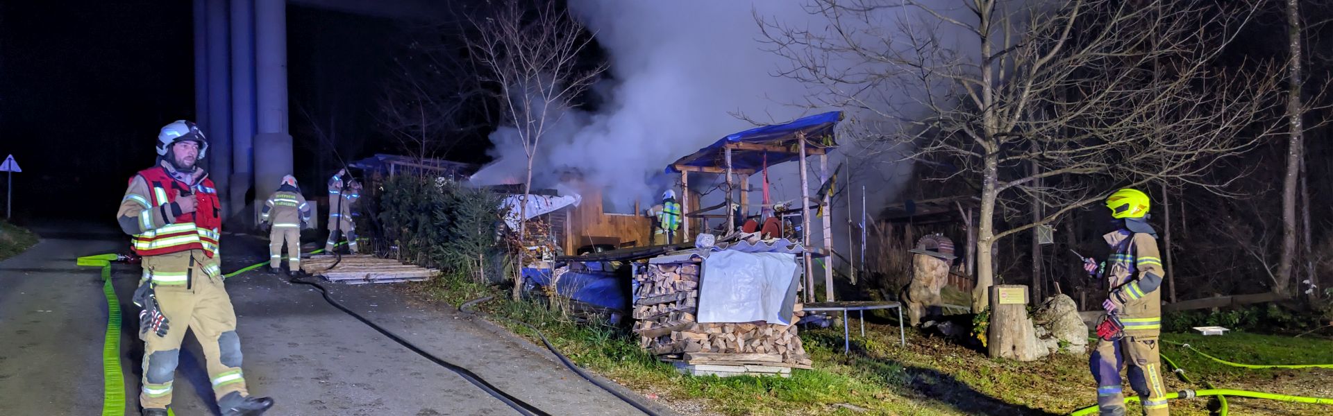 Sonntag Abend brannte im Pfarrwerfener Ortsteil Schlaming ein hölzerner Geräteschuppen. Aufgrund der vom Notrufer beschriebenen hohen Brandintensität löste die Landesalarm- und Warnzentrale sofort Alarmstufe 2 aus. Dadurch wurde neben der ortszuständigen Feuerwehr Pfarrwerfen auch die räumlich nahe gelegene Feuerwehr Werfen alarmiert und zahlreiche Einsatzkräfte waren innerhalb kürzester Zeit am Einsatzort.