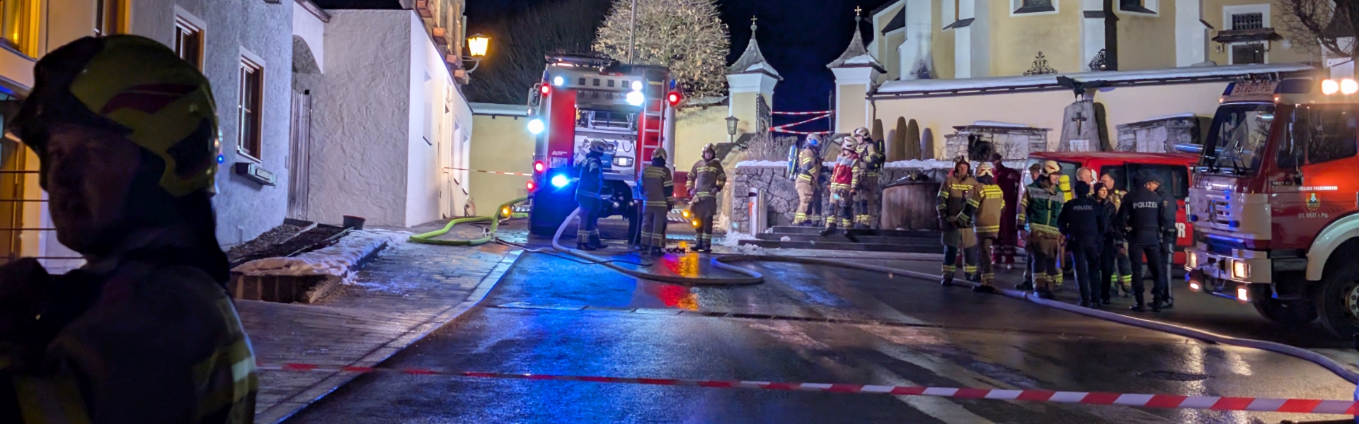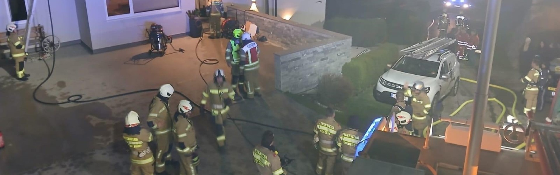 In der Nacht von Sonntag auf Montag standen 63 Mitglieder der Feuerwehren Goldegg und Schwarzach bei einem langwierigen Schwelbrand in einem Einfamilienhaus im Einsatz. Die Bewohner waren durch Rauchmelder auf den Brand aufmerksam geworden und hatten daraufhin die Feuerwehr alarmiert. Das Feuer war in einer Wand in Holzriegelbauweise im Bereich des Kamins ausgebrochen und hatte sich in weiterer Folge innerhalb der Wand bis zum Dach hinauf ausgebreitet.